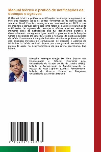 O Manual teórico e prático de notificações de doenças e agravos é um livro que descreve todos os pontos fundamentais de notificações de saúde no Brasil. Este livro começou a ser desenvolvido em 2023, o que me inspirou a escrever sobre esse tema foram os diversos erros/falhas de notificações de agravos de doenças e efeitos adversos. Além de inúmeros erros de notificações que fui identificando durante o desenvolvimento de alguns artigos científicos pelo Instituto de Pesquisa Clínica e Patológica Da Silva (IDS) sobre a temática de políticas públicas de saúde. Este manual é um guia ilustrativo atualizado, prático e teórico dos principais métodos de comunicação de doenças e agravos do Ministério da Saúde do Brasil. Espero que você goste do conteúdo e o mesmo te ajude no desenvolvimento da sua rotina profissional. Boa leitura.