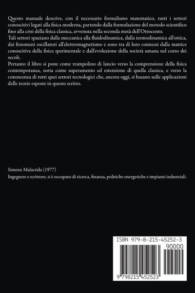 Questo manuale descrive, con il necessario formalismo matematico, tutti i settori conoscitivi legati alla fisica moderna, partendo dalla formulazione del metodo scientifico fino alla crisi della fisica classica, avvenuta nella seconda metà dell'Ottocento. Tali settori spaziano dalla meccanica alla fluidodinamica, dalla termodinamica all'ottica, dai fenomeni oscillatori all'elettromagnetismo e sono tra di loro connessi dalla matrice conoscitiva della fisica sperimentale e dall'evoluzione della società umana nel corso dei secoli. Pertanto il libro si pone come trampolino di lancio verso la comprensione della fisica contemporanea, sorta come superamento ed estensione di quella classica, e verso la conoscenza di tutti quei settori tecnologici che, ancora oggi, si basano sulle applicazioni delle teorie esposte in questo scritto.