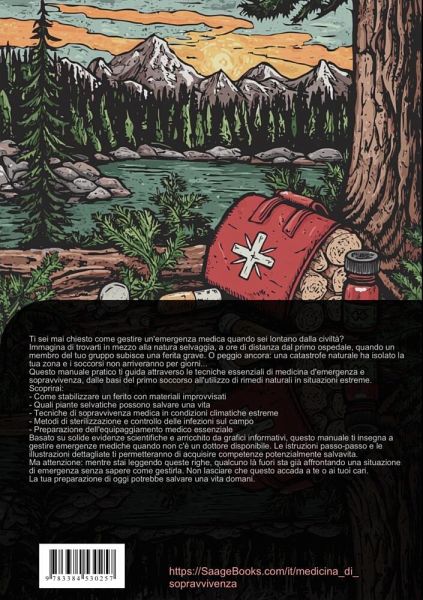 Il 'Manuale di sopravvivenza medica' è una guida pratica e dettagliata che affronta la medicina outdoor e di emergenza in situazioni estreme dove l'assistenza medica professionale non è immediatamente disponibile.Il manuale si divide in cinque sezioni principali:1. Primo Soccorso Base:Tecniche salvavita essenziali, gestione delle ferite sul campo e metodi naturali per il controllo del dolore. Include procedure dettagliate per la rianimazione cardiopolmonare e il trattamento delle emorragie.2. Medicina Wilderness e Rimedi Naturali:Una guida approfondita sulle piante medicinali e i loro usi terapeutici, metodi di preparazione di tinture e impacchi, tecniche di medicina naturale per situazioni di emergenza.3. Medicina di Sopravvivenza:Gestione di condizioni critiche come ipotermia, colpo di calore e avvelenamenti. Fornisce protocolli pratici per sopravvivere senza medico in ambienti ostili.4. Medicina delle Catastrofi:Strumenti e tecniche per la gestione di traumi, controllo delle infezioni e sterilizzazione degli strumenti in condizioni di emergenza. Include linee guida per la creazione di un kit medico di sopravvivenza.5. Medicina Outdoor e Prevenzione:Misure preventive, valutazione dei rischi ambientali e preparazione fisica per attività outdoor.Questo manuale è particolarmente utile per escursionisti, operatori di pronto soccorso outdoor e chiunque si trovi ad affrontare situazioni di emergenza medica in ambienti remoti o durante catastrofi naturali.Questo libro è stato creato utilizzando tecnologie innovative come l'Intelligenza Artificiale e strumenti sviluppati appositamente - ad esempio, nella ricerca di idee, nella ricerca, nella scrittura, nella redazione, nel controllo qualità e nella progettazione di illustrazioni decorative.In questo modo, vogliamo offrirvi un'esperienza di lettura particolarmente coerente, moderna e di qualità ancora superiore.
