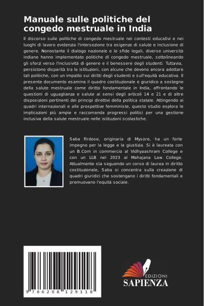 Il discorso sulle politiche di congedo mestruale nei contesti educativi e nei luoghi di lavoro evidenzia l'intersezione tra esigenze di salute e inclusione di genere. Nonostante il dialogo nazionale e le sfide legali, diverse università indiane hanno implementato politiche di congedo mestruale, sottolineando gli sforzi verso l'inclusività di genere e il benessere degli studenti. Tuttavia, persistono disparità tra le istituzioni, con alcune che devono ancora adottare tali politiche, con un impatto sui diritti degli studenti e sull'equità educativa. Il presente documento esamina il quadro costituzionale e giuridico a sostegno della salute mestruale come diritto fondamentale in India, affrontando le questioni di uguaglianza e salute ai sensi degli articoli 14 e 21 e di altre disposizioni pertinenti dei principi direttivi della politica statale. Attingendo ai quadri internazionali e alle prospettive femministe, questo studio esplora le implicazioni più ampie e raccomanda progressi politici per una gestione inclusiva della salute mestruale nelle istituzioni scolastiche.