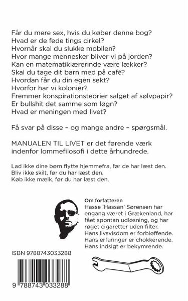 Får du mere sex, hvis du køber denne bog? Hvad er de fede tings cirkel? Hvornår skal du slukke mobilen? Hvor mange mennesker bliver vi på jorden? Kan en matematiklærerinde være lækker? Skal du tage dit barn med på café? Hvordan får du din egen sekt? Hvorfor har vi kolonier? Fremmer konspirationsteorier salget af sølvpapir? Er bullshit det samme som løgn? Hvad er meningen med livet? Få svar på disse - og mange andre - spørgsmål. MANUALEN TIL LIVET er det førende værk indenfor lommefilosofi i dette århundrede. Lad ikke dine børn flytte hjemmefra, før de har læst den. Bliv ikke skilt, før du har læst den. Køb ikke mælk, før du har læst den.