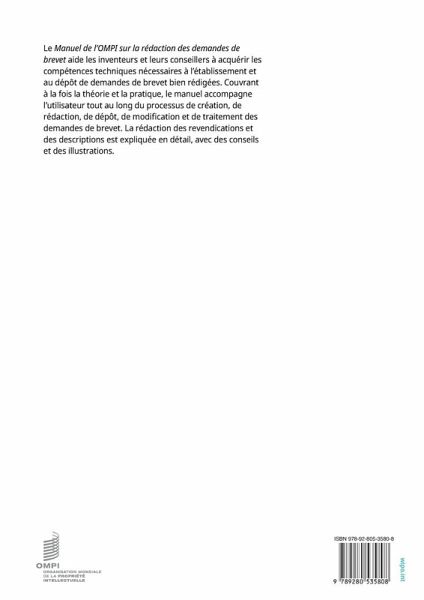 Le Manuel de l'OMPI pour la rédaction des demandes de brevet aide les inventeurs et leurs conseillers à acquérir les compétences techniques nécessaires à l'établissement et au dépôt de demandes de brevet bien rédigées. Couvrant à la fois la théorie et la pratique, le manuel accompagne l'utilisateur tout au long du processus de création, de rédaction, de dépôt, de modification et de traitement des demandes de brevet. La rédaction des revendications et des descriptions est expliquée en détail, avec des conseils et des illustrations.