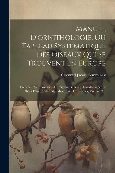 Le manuel d'ornithologie de Coenrad Jacob Temminck vous permettra de découvrir les différentes espèces d'oiseaux en Europe. Avec une analyse du système général d'ornithologie et une table alphabétique des espèces, cet ouvrage est une référence pour les ornithologues en herbe. This work has been selected by scholars as being culturally important, and is part of the knowledge base of civilization as we know it. This work is in the "public domain in the United States of America, and possibly other nations. Within the United States, you may freely copy and distribute this work, as no entity (individual or corporate) has a copyright on the body of the work. Scholars believe, and we concur, that this work is important enough to be preserved, reproduced, and made generally available to the public. We appreciate your support of the preservation process, and thank you for being an important part of keeping this knowledge alive and relevant.