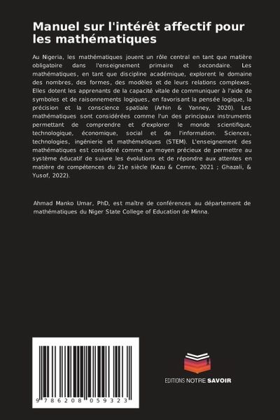 Au Nigeria, les mathématiques jouent un rôle central en tant que matière obligatoire dans l'enseignement primaire et secondaire. Les mathématiques, en tant que discipline académique, explorent le domaine des nombres, des formes, des modèles et de leurs relations complexes. Elles dotent les apprenants de la capacité vitale de communiquer à l'aide de symboles et de raisonnements logiques, en favorisant la pensée logique, la précision et la conscience spatiale (Arhin & Yanney, 2020). Les mathématiques sont considérées comme l'un des principaux instruments permettant de comprendre et d'explorer le monde scientifique, technologique, économique, social et de l'information. Sciences, technologies, ingénierie et mathématiques (STEM). L'enseignement des mathématiques est considéré comme un moyen précieux de permettre au système éducatif de suivre les évolutions et de répondre aux attentes en matière de compétences du 21e siècle (Kazu & Cemre, 2021 ; Ghazali, & Yusof, 2022).