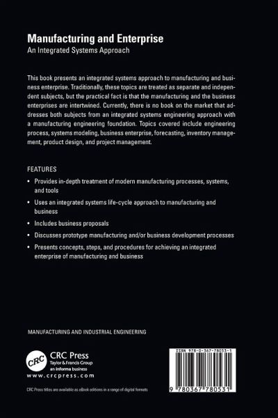 This book presents an integrated systems approach to manufacturing and business enterprise. Traditionally, these topics are treated as separate and independent subjects, but the practical fact is that the manufacturing and the business enterprises are intertwined. Currently, there is no book on the market that addresses both subjects from an integrated systems engineering approach with a manufacturing engineering foundation. Topics covered include engineering process, systems modeling, business enterprise, forecasting, inventory management, product design, and project management. Features Provides in-depth treatment of modern manufacturing processes, systems, and tools Uses an integrated systems life-cycle approach to manufacturing and business Includes business proposals Discusses prototype manufacturing and/or business development processes Presents concepts, steps, and procedures for achieving an integrated enterprise of manufacturing and business