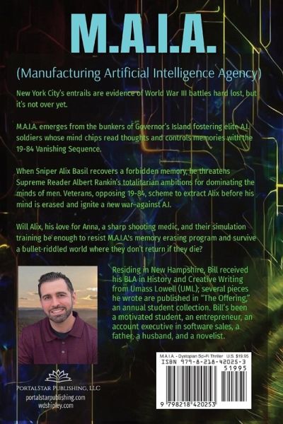 New York City's entrails are evidence of World War III battles hard lost, but it's not over yet. M.A.I.A. (Manufacturing Artificial Intelligence Agency) emerges from the bunkers of Governor's Island fostering elite A.I. soldiers whose mind chips read thoughts and controls memories with the 19-84 Vanishing Sequence. When Sniper Alix Basil recovers a forbidden memory, he threatens Supreme Reader, Albert Rankin's totalitarian ambitions for dominating the minds of men. Veterans, opposing 19-84, scheme to extract Alix before his mind is erased and ignite a new war-against A.I. Will Alix, his love for Anna, a sharp shooting medic, their simulation training be enough to resist M.A.I.A.'s memory erasing program and survive a bullet-riddled world where they don't return if they die?