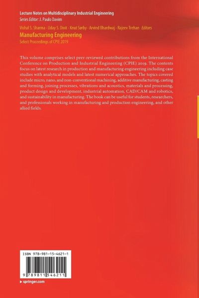 This volume comprises select peer-reviewed contributions from the International Conference on Production and Industrial Engineering (CPIE) 2019. The contents focus on latest research in production and manufacturing engineering including case studies with analytical models and latest numerical approaches. The topics covered include micro, nano, and non-conventional machining, additive manufacturing, casting and forming, joining processes, vibrations and acoustics, materials and processing, product design and development, industrial automation, CAD/CAM and robotics, and sustainability in…mehr