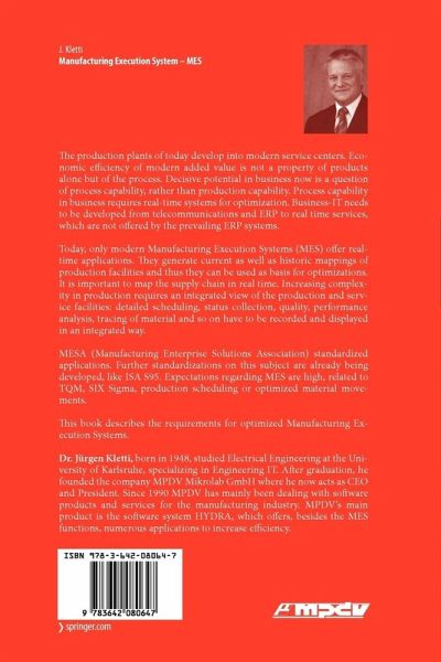 New ways for the effective factory.- MES for process capability.- Added value from software.- MES: the new class of IT applications.- Building an MES system.- Integrated production management with MES.- Detailed planning and control with MES.- Quality assurance with MES.- Personnel management with MES.- MES with SAP.- MES in plastics processing.