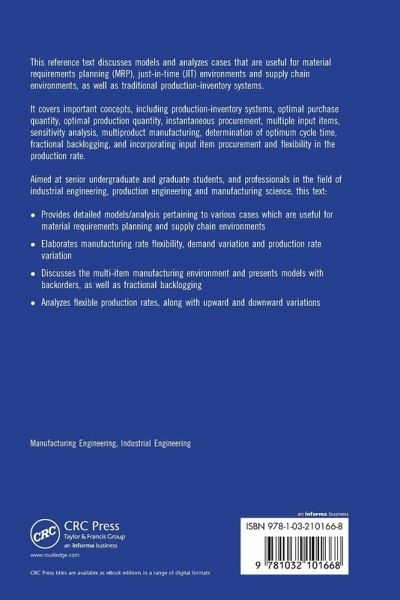 The reference text addresses the problems and flexibility in multiproduct manufacturing and services organizations in a single volume. It will be an ideal reference text for senior undergraduate, graduate students, and professionals in the field of industrial engineering, production engineering, and manufacturing science.