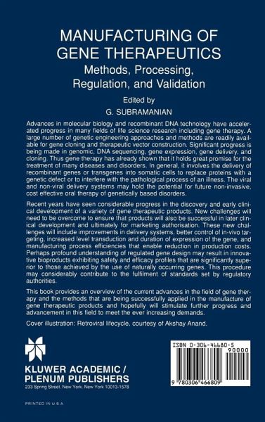 This book provides an overview of the current advances in the field of gene therapy and the methods that are being successfully applied in the manufacture of gene therapeutic products, and hopefully will stimulate further progress and advancement in this field to meet the ever-increasing demands.