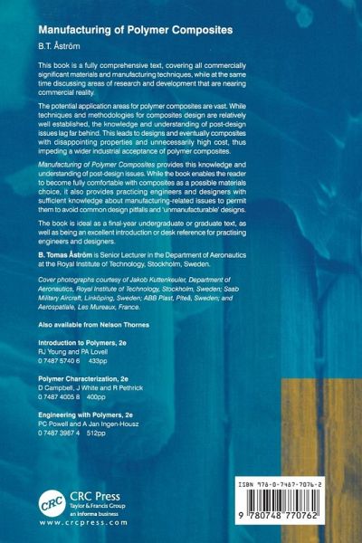 The potential application areas for polymer composites are vast. While techniques and methodologies for composites design are relatively well established, the knowledge and understanding of post-design issues lag far behind. This leads to designs and eventually composites with disappointing properties and unnecessarily high cost, thus impeding a wider industrial acceptance of polymer composites. Manufacturing of Polymer Composites completely covers pre- and post-design issues. While the book enables students to become fully comfortable with composites as a possible materials choice, it also provides sufficient knowledge about manufacturing-related issues to permit them to avoid common pitfalls and unmanufacturable designs. The book is a fully comprehensive text covering all commercially significant materials and manufacturing techniques while at the same time discussing areas of research and development that are nearing commercial reality.