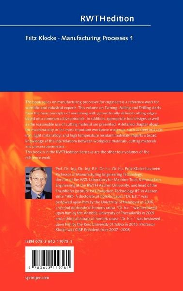 The book series on manufacturing processes for engineers is a reference work for scientific and industrial experts. This volume on Turning, Milling and Drilling starts from the basic principles of machining with geometrically defined cutting edges based on a common active principle. In addition, appropriate tool designs as well as the reasonable use of cutting material are presented. A detailed chapter about the machinability of the most important workpiece materials, such as steel and cast iron, light metal alloys and high temperature resistant materials imparts a broad knowledge of the interrelations between workpiece materials, cutting materials and process parameters.