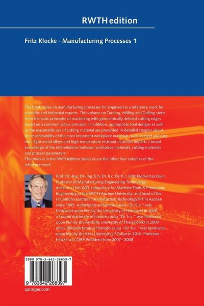 The book series on manufacturing processes for engineers is a reference work for scientific and industrial experts. This volume on Turning, Milling and Drilling starts from the basic principles of machining with geometrically defined cutting edges based on a common active principle. In addition, appropriate tool designs as well as the reasonable use of cutting material are presented. A detailed chapter about the machinability of the most important workpiece materials, such as steel and cast iron, light metal alloys and high temperature resistant materials imparts a broad knowledge of the interrelations between workpiece materials, cutting materials and process parameters.