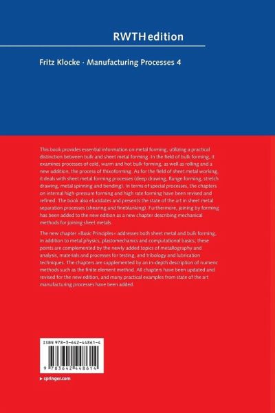 The new chapter "Basic Principles" addresses both sheet metal and bulk forming, in addition to metal physics, plastomechanics and computational basics; these points are complemented by the newly added topics of metallography and analysis, materials and processes for testing, and tribology and lubrication techniques. The chapters are supplemented by an in-depth description of modern numeric methods such as the finite element method. All chapters have been updated and revised for the new edition, and many practical examples from modern manufacturing processes have been added.