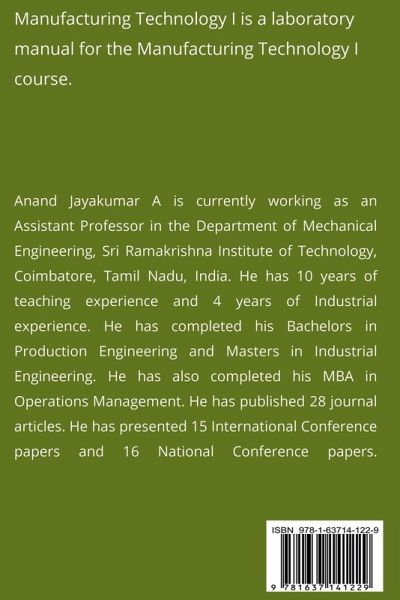 Manufacturing Technology I is a laboratory manual for the Manufacturing Technology I course. There are many exercises.