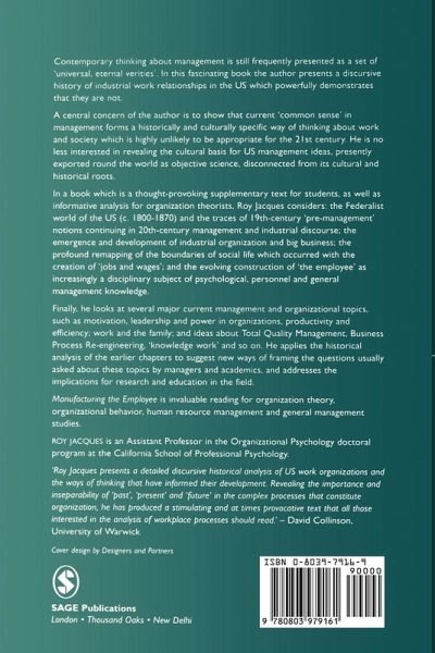 Contemporary thinking about management is still frequently presented as a set of universal, eternal verities. In this fascinating book Roy Jacques presents a discursive history of industrial work relationships in the United States which powerfully demonstrates that they are not.