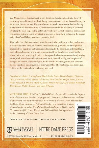 The volume The Many Faces of Beauty joins the rich debate on beauty and aesthetic theory by presenting an ambitious, interdisciplinary examination of various facets of beauty in nature and human society. The contributors ask such questions as, Is there beauty in mathematical theories? What is the function of arts in the economy of cultures? What are the main steps in the historical evolution of aesthetic theories from ancient civilizations to the present? What is the function of the ugly in enhancing the expressivity of art? and What constitutes beauty in film? The sixteen essays, by eminent scientists, critics, scholars, and artists, are divided into five parts. In the first, a mathematician, physicist, and two philosophers address beauty in mathematics and nature. In the second, an anthropologist, psychologist, historian of law, and economist address the place of beauty in the human mind and in society. Explicit philosophical reflections on notoriously vexing issues, such as the historicity of aesthetics itself, interculturality, and the place of the ugly, are themes of the third part. In the fourth, practicing artists discuss beauty in painting, music, poetry, and film. The final essay, by a theologian, reflects on the relation between beauty and God.