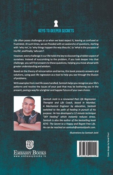 When we least expect it, life poses numerous challenges, often paralyzing us. At such times, our mind is flooded with an avalanche of questions, starting with 'why me', to 'why are things happening the way they are', to 'who am I' and finally, 'what is the purpose of my life'. Although each challenge in our life helps us discover that hidden aspect of ourselves, raising us to an elevated level of consciousness in our life's journey, the answers to our questions would certainly help us move ahead with higher understanding and greater wisdom. The theory of reincarnation and theory of karma have the key to these deeper secrets of life. Using this as the foundation and past life regression therapy as a tool, the questions that bother us on a daily basis, can be convincingly answered. This book not only answers the questions that disturb you, but also pulls you out of the feeling of victimhood and straightens the creases in the fabric of your life. This in turn will help you recognize your life's patterns and resolve the issues of the past that are bothering you in the present, paving a way for a brighter and happier future. ABOUT THE AUTHOR Often called the Dale Carnegie of India, Santosh Joshi shot to fame after developing the SKY Healing technique and writing the self-help book KEYS which is now a best seller. Santosh is a new-age motivational speaker, life coach and past life regression therapist based in Mumbai. Eminent personalities such as Dr. APJ Abdul Kalam, Nitin Gadkari, Rahul Dravid, Madhur Bandarkar, Mallika Sarabhai and even spiritual leaders such as Sri Sri Ravi Shankar, Sister Shivani and Dada Vaswani have supported Santosh's work and endorsed KEYS.