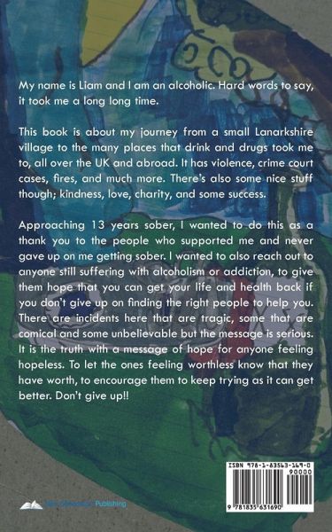 My name is Liam and I am an alcoholic. Hard words to say, it took me a long long time. This book is about my journey from a small Lanarkshire village to the many places that drink and drugs took me to, all over the UK and abroad. It has violence, crime court cases, fires, and much more. There's also some nice stuff though; kindness, love, charity, and some success. Approaching 13 years sober, I wanted to do this as a thank you to the people who supported me and never gave up on me getting sober. I wanted to also reach out to anyone still suffering with alcoholism or addiction, to give them hope that you can get your life and health back if you don't give up on finding the right people to help you. There are incidents here that are tragic, some that are comical and some unbelievable but the message is serious. It is the truth with a message of hope for anyone feeling hopeless. To let the ones feeling worthless know that they have worth, to encourage them to keep trying as it can get better. Don't give up!!