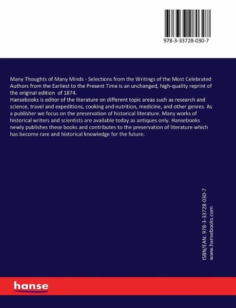 Many Thoughts of Many Minds - Selections from the Writings of the Most Celebrated Authors from the Earliest to the Present Time is an unchanged, high-quality reprint of the original edition of 1874.