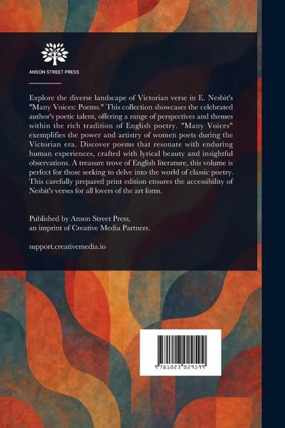 Explore the diverse landscape of Victorian verse in E. Nesbit's "Many Voices: Poems." This collection showcases the celebrated author's poetic talent, offering a range of perspectives and themes within the rich tradition of English poetry. "Many Voices" exemplifies the power and artistry of women poets during the Victorian era. Discover poems that resonate with enduring human experiences, crafted with lyrical beauty and insightful observations. A treasure trove of English literature, this volume is perfect for those seeking to delve into the world of classic poetry. This carefully prepared print edition ensures the accessibility of Nesbit's verses for all lovers of the art form. This work has been selected by scholars as being culturally important, and is part of the knowledge base of civilization as we know it. This work is in the public domain in the United States of America, and possibly other nations. Within the United States, you may freely copy and distribute this work, as no entity (individual or corporate) has a copyright on the body of the work. Scholars believe, and we concur, that this work is important enough to be preserved, reproduced, and made generally available to the public. We appreciate your support of the preservation process, and thank you for being an important part of keeping this knowledge alive and relevant.