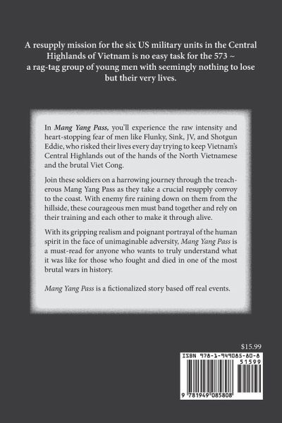 A resupply missing for the six US military units in the Central Highlands of Vietnam is no easy task for the 573 - a rag-tag group of young men with seemingly nothing to lose but their very lives. In Mang Yang Pass, you'll experience the raw intensity and heart-stopping fear of men like Flunky, Sink, JV, Shotgun Eddie, who risked their lives every day trying to keep Vietnam's Central Highlands out of the hands of the North Vietnamese and the brutal Viet Cong. Join these soldiers on a harrowing journey through the treacherous Mang Yang Pass as they take a crucial resupply convoy to the coast. With enemy fire raining down on them from the hillside, these courageous men must band together and rely on their training and each other to make it through alive. With its gripping realism and poignant portrayal of the human spirit in the face of unimaginable adversity, Mang Yang Pass is a must-read for anyone who wants to truly understand what it was like for those who fought and died in one of the most brutal wars in history. Mang Yang Pass is a fictionalized story based off real events.
