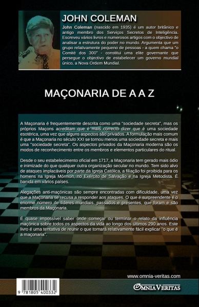 A Maçonaria é frequentemente descrita como uma "sociedade secreta", mas os próprios Maçons acreditam que é mais correcto dizer que é uma sociedade esotérica, uma vez que alguns aspectos são privados. A formulação mais comum é que a Maçonaria no século XXI se tornou menos uma sociedade secreta e mais uma "sociedade secreta". Os aspectos privados da Maçonaria moderna são os modos de reconhecimento entre os membros e elementos particulares do ritual. Por exemplo, os maçons podem perguntar aos recém-chegados que encontram "estás na praça? Numa sociedade aberta como a dos Estados Unidos, pode-se perguntar porque é que o segredo é necessário. Descrever a Maçonaria é uma tarefa difícil. Dizer que é a maior organização fraternal do mundo com mais de três milhões de membros nos Estados Unidos, setecentos mil na Grã-Bretanha e mais um milhão em todo o mundo, e que foi objecto de cinquenta mil livros e panfletos, é apenas o começo. Desde a sua criação oficial em 1717, a Maçonaria tem gerado mais ódio e inimizade do que qualquer outra organização secular no mundo. Tem sido alvo de ataques implacáveis por parte da Igreja Católica, os seus membros foram banidos da Igreja Mórmon, do Exército de Salvação e da Igreja Metodista. É banida em vários países. Alegações anti-maçónicas são sempre encontradas com dificuldade, uma vez que a Maçonaria se recusa a responder aos ataques. O que é surpreendente é o enorme número de líderes mundiais, passados e presentes, que foram e são membros da Maçonaria: Rei George VI de Inglaterra, Frederico o Grande da Prússia e Rei Haakon VII da Noruega. A história dos Estados Unidos está repleta de líderes que foram maçons, tais como George Washington, Andrew Jackson, James Polk, Theodore Roosevelt, Franklin D. Roosevelt, Harry Truman, Gerald Ford e Ronald Reagan. A Segunda Guerra Mundial foi liderada por líderes maçónicos britânicos como Winston Churchill e o Presidente dos EUA Franklin D. Roosevelt, bem como por líderes militares americanos como os Generais Omar Bradley, Mark Clark e George Marshall. É quase impossível saber onde começar ou terminar a história da influência maçónica em todos os aspectos da vida ao longo dos últimos 290 anos. Este livro é uma tentativa de reunir o que tornará relativamente fácil explicar "o que é a maçonaria".