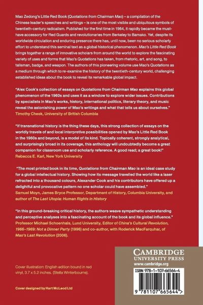 'Alex Cook's collection of essays on Quotations from Chairman Mao explains this global phenomenon of the 1960s and uses it as a window to explore wider issues, from Chinese politics and society, to traveling theory across Asia, Africa and Europe, to popular appropriation of state ideologies. Contributions by specialists in Mao's works, history, international politics, literary theory, and music reveal the astonishing power of Mao's writings and what that tells us about ourselves.' Timothy Cheek, University of British Columbia