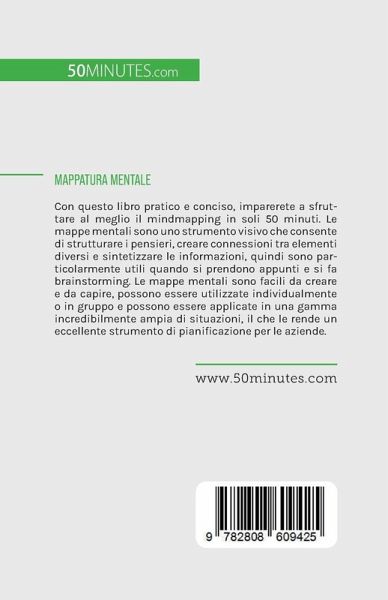 Con questo libro pratico e conciso, imparerete a sfruttare al meglio il mindmapping in soli 50 minuti. Le mappe mentali sono uno strumento visivo che consente di strutturare i pensieri, creare connessioni tra elementi diversi e sintetizzare le informazioni, quindi sono particolarmente utili quando si prendono appunti e si fa brainstorming. Le mappe mentali sono facili da creare e da capire, possono essere utilizzate individualmente o in gruppo e possono essere applicate in una gamma incredibilmente ampia di situazioni, il che le rende un eccellente strumento di pianificazione per le aziende. In questo libro imparerete come le mappe mentali possono aiutarvi nelle presentazioni, nella pianificazione dei progetti e nell'innovazione. Include inoltre consigli utili per dare priorità alle idee, suggerimenti sui diversi tipi di software di mappatura mentale ed esempi pratici di mappe mentali che vi daranno tutto ciò che vi serve per organizzare i vostri pensieri e incanalare la vostra creatività.