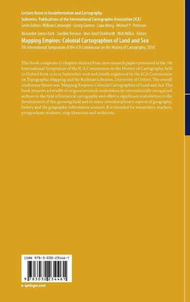 This book comprises 17 chapters derived from new research papers presented at the 7th International Symposium of the ICA Commission on the History of Cartography, held in Oxford from 13 to 15 September 2018 and jointly organized by the ICA Commission on Topographic Mapping and the Bodleian Libraries, University of Oxford. The overall conference theme was 'Mapping Empires: Colonial Cartographies of Land and Sea'. The book presents a breadth of original research undertaken by internationally recognized authors in the field of historical cartography and offers a significant contribution to the development of this growing field and to many interdisciplinary aspects of geography, history and the geographic information sciences. It is intended for researchers, teachers, postgraduate students, map librarians and archivists.