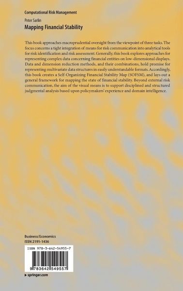 This book approaches macroprudential oversight from the viewpoint of three tasks. The focus concerns a tight integration of means for risk communication into analytical tools for risk identification and risk assessment. Generally, this book explores approaches for representing complex data concerning financial entities on low-dimensional displays. Data and dimension reduction methods, and their combinations, hold promise for representing multivariate data structures in easily understandable formats. Accordingly, this book creates a Self-Organizing Financial Stability Map (SOFSM), and lays out a general framework for mapping the state of financial stability. Beyond external risk communication, the aim of the visual means is to support disciplined and structured judgmental analysis based upon policymakers' experience and domain intelligence.