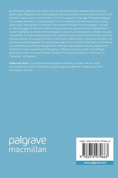 By offering an analysis of the idea of home across the individual, interpersonal, social, and global scales, Mapping Home aims to show the extent to which self-concept is deeply tied to constructions of home in a globally mobile age. The epistemological link between dwelling as "knowing oneself" and the experience of welcome as key to being able to map "one's place(s) in the world" are examined through Martin Heidegger's concept of dwelling, Zygmunt Bauman's notion of liquid modernity, Jacques Derrida's exploration of hostile hospitality, and Kwame Anthony Appiah's sense of cosmopolitanism as border-crossing conversation. To further explore these ideas, the book draws on multimodal literature and films that span genres, including gothic horror, fantasy and science fiction, thoughtful comedies, and politically nuanced tragedies. The quality that deeply links the texts is their ability to illuminate the stabilities and mobilities through which home not only mediates but also integrates an individual's diverse experiences of belonging in different locations as well as on different geocultural scales-from the intimate "household" to the more abstract "hometown" or "homeland" and beyond.