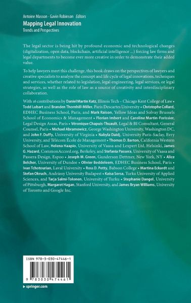 Foreword byDaniel Martin Katz.- Preface byAntoine Masson and Gavin Robinson.- An Introduction to Creativity: Legal Professions and the Creative Profiler Approach byTodd Lubart and Branden Thornhill-Miller.- Creativity in Law: Reflections on Innovation in Law and the Creativity of Legal Professionals byChristophe Collard and Mark Raison.- What Methods for Legal Innovation byFlorian Imbertand Caroline Martin-Forissier.- Legal Innovation Mechanisms: From the Designer to the Consumer byVéronique Chapuis-Thuault.- Legal Innovation and Communication byAntoine Masson.- The Emergence of Intellectual Property for Legal Innovation byMichael Abramowicz and John F. Duffy.- New Practices in the Digital Economy: Towards the Uberization of Law? byNabyla Daidj.- Legal Innovation in Contracting, and Beyond: Merging Design and Technology Tools for the InformationAge byThomas D. Barton, Helena Haapio, James G. Hazard and Stefania Passera.- Legaltech and the Future of Startup Lawyering byJoseph Green.- Legal Creativity and Boardroom Creativity byAlice Belcher.- Disruptive Litigation byOlivier Beddeleem.- CSR Perspectives about Innovation in Canadian Corporate Law: An ex ante / ex post Approach? byIvan Tchotourian.- Consumers & Complaints: Marketing Evolution Leads to Legal Innovation from Contract Clauses to General Fairness byRoss Petty.- The Legal Innovation of the European Grouping of Territorial Cooperation and its Impact on Systems Competition byMartina Eckardt and Stefan Okruch.- Deregulation and Proactive Law as Regulative Innovations: A Case Study from Finland byKaisa Sorsa and Tarja Salmi-Tolonen.- Reimagining Today's Legal Education for Tomorrow's Lawyers: The Role of Legal Design, Technology and Innovation byStephanie Dangel, Margaret Hagan and James Bryan Williams.
