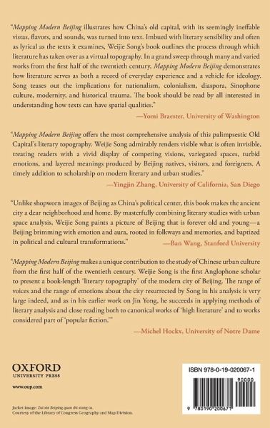 "I have lived in Beijing for thirty years, but I can't say that I have yet comprehended this city," wrote Lao Xiang, the great Chinese novelist, in 1935. Mapping Modern Beijing explores the various ways novelists sought to understand and articulate China's second largest city in the first half of twentieth century. Song investigates five modes of representing Beijing: as a warped hometown, a city of snapshots and manners, an aesthetic city, an imperial capital in comparative and cross-cultural perspective, and a displaced city on the Sinophone and diasporic postmemory. Drawing from literary canons to exotic narratives, from modernist poetry to chivalric fantasy, from popular culture to urban planning, this book explores the complex nexus of urban spaces, archives of emotions, and literary topography of Beijing in its long journey from imperial capital to Republican city and to socialist metropolis. While most English-language literary studies of China focus on its rural locales, Song's study presents a welcome departure, expanding our understandings of Chinese literature into the urban and the modern.