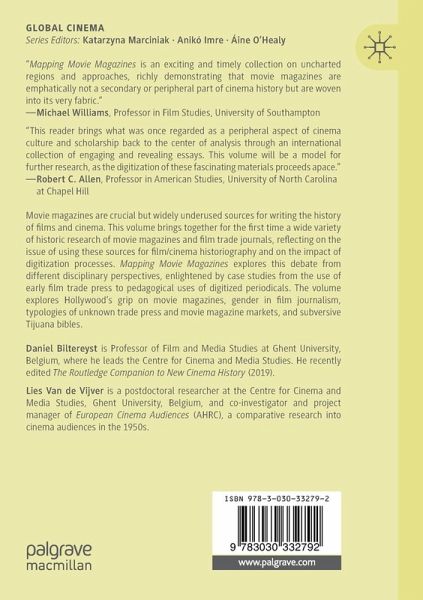 Movie magazines are crucial but widely underused sources for writing the history of films and cinema. This volume brings together for the first time a wide variety of historic research of movie magazines and film trade journals, reflecting on the issue of using these sources for film/cinema historiography and on the impact of digitization processes. Mapping Movie Magazines explores this debate from different disciplinary perspectives, enlightened by case studies from the use of early film trade press to pedagogical uses of digitized periodicals. The volume explores Hollywood's grip on movie magazines, gender in film journalism, typologies of unknown trade press and movie magazine markets, and subversive Tijuana bibles.