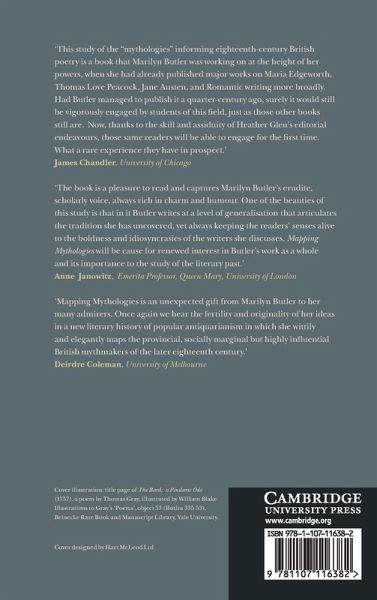 Marilyn Butler (1937-2014) was a prominent scholar in eighteenth-century and Romantic studies, a groundbreaking practitioner and theorist of the historicist criticism of literary texts, and pioneering scholarly editor of hitherto marginalized women writers. Her widely acclaimed publications include Maria Edgeworth: A Literary Biography (1972), Jane Austen and the War of Ideas (1975), Peacock Displayed: A Satirist in his Context (1979), Romantics, Rebels and Reactionaries: English Literature and its Background, 1760-1830 (1981), and seminal scholarly editions of works by Mary Wollstonecraft, Maria Edgeworth, Mary Shelley and Jane Austen. She was King Edward VII Professor of English Literature at the University of Cambridge from 1986 to 1993, and Rector of Exeter College, Oxford, from 1993 to 2004. Mapping Mythologies, finished in 1984, but never hitherto published, is the first volume of a never-completed larger project on literary mythologies between 1730 and 1830.