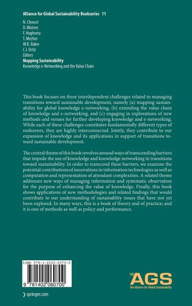 Challenges and Focus This book focuses on three interdependent research initiatives designed to facilitate the management of transitions toward sustainable development. These initiatives consist of: (a) mapping sustainability as a domain of kn- ledge; (b) contributing to the development of global knowledge e-networking and extending the knowledge value chain; and (c) exploring new methods to expand our knowledge and to improve e-networking practices. While the activities differ in nature, scale and scope, they are highly interconnected. It is our hope that, jointly, they will contribute to our common quest for a su- ainable future. Our underlying objectives are to contribute to the provision, mana- ment, and sharing of knowledge, and to enhance the value of knowledge and its uses by different constituencies in diverse contexts and at different stages of development. The central theme of this book, connecting its different parts, is about ways of transcending critical barriers to the effective uses of knowledge and e-networking. Of special relevance is the development of new approaches to the provision and transmission - from local sources to global networks and from global sources to local networks. In many ways, this is a book of theory and methods, as well as policy and performance.