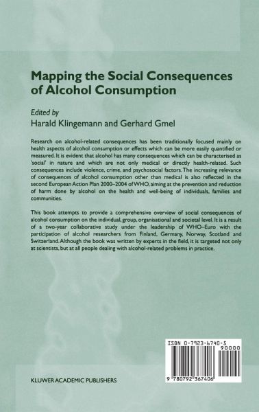 This book attempts to provide a comprehensive overview of social consequences of alcohol consumption on the individual, group, organisational, and societal level. It is a result of a two-year collaborative study under the leadership of WHO-Euro with the participation of alcohol researchers from Finland, Germany, Norway, Scotland, and Switzerland. Although the book was written by experts in the field, it is targeted not only at scientists, but at all people dealing with alcohol-related problems in practice.