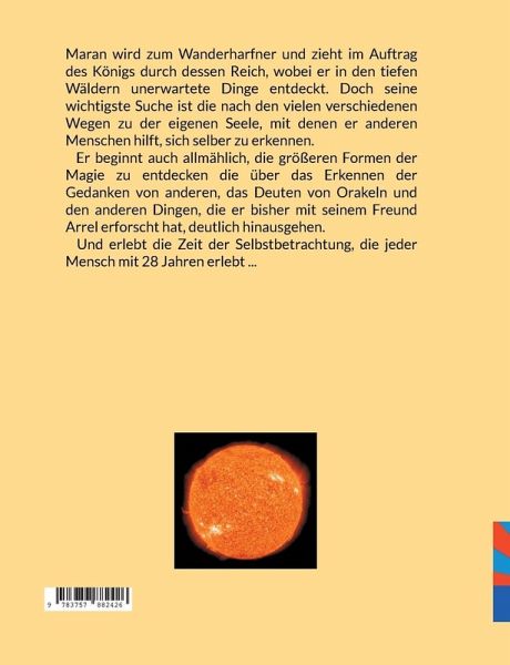 Maran wird zum Wanderharfner und zieht im Auftrag des Königs durch dessen Reich, wobei er in den tiefen Wäldern unerwartete Dinge entdeckt. Doch seine wichtigste Suche ist die nach den vielen verschiedenen Wegen zu der eigenen Seele, mit denen er anderen Menschen hilft, sich selber zu erkennen. Er beginnt auch allmählich, die größeren Formen der Magie zu entdecken die über das Erkennen der Gedanken von anderen, das Deuten von Orakeln und den anderen Dingen, die er bisher mit seinem Freund Arrel erforscht hat, deutlich hinausgehen. Und erlebt die Zeit der Selbstbetrachtung, die jeder Mensch mit 28 Jahren erlebt ...…mehr
