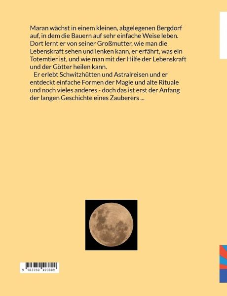 Maran wächst in einem kleinen, abgelegenen Bergdorf auf, in dem die Bauern auf sehr einfache Weise leben. Dort lernt er von seiner Großmutter, wie man die Lebenskraft sehen und lenken kann, er erfährt, was ein Totemtier ist, und wie man mit der Hilfe der Lebenskraft und der Götter heilen kann. Er erlebt Schwitzhütten und Astralreisen und er entdeckt einfache Formen der Magie und alte Rituale und noch vieles anderes - doch das ist erst der Anfang der langen Geschichte eines Zauberers ...