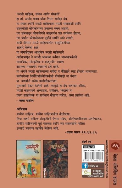 THIS IS YET ANOTHER LITERARY CRITICISM BY DR. ANAND YADAV, THE THIRD OF ITS TYPE. BASED ON THE AVAILABLE MARATHI LITERATURE, DR. YADAV SHADES LIGHT ON MANY ASPECTS INCLUDING MARATHI LITERATURE IN THE LIGHT OF MARATHI COMMUNITY AND CULTURE, THE VARIOUS QUERIES IT RAISES AND THE DIFFERENT ANGLES WHILE DEALING WITH THE QUERIES. HIS ANALYSIS INCLUDES SCRUTINY OF LITERATURE OF ALL KIND, RIGHT FROM AGE OLD LITERATURE TILL THE CURRENT ONES. THIS HELPS US TO UNDERSTAND CULTURAL, LITERARY AND SOCIETAL ASPECTS. IT ALSO REVEALS THE LIMITS AND CHARACTERISTICS OF LITERATURE. PROF. YADAV HAS INTERVIEWED MANY NOVEL WRITERS TO UNDERSTAND THE PROCESS OF WRITING OF A NOVEL. THIS TEXT WILL BE AN EXCELLENT AID TO THE SCHOLARS, CRITICS, STUDENTS AND YOUNG ENTREPRENEURS. BABA PATIL. ¿¿ ¿¿. ¿¿¿¿ ¿¿¿¿ ¿¿¿¿¿ ¿¿¿¿¿ ¿¿¿¿¿¿¿ ¿¿¿¿¿. ¿¿ ¿¿¿¿¿¿¿ ¿¿¿¿¿¿¿ ¿¿¿¿¿ ¿¿¿¿¿¿¿¿¿¿ ¿¿¿¿¿ ¿¿¿¿¿¿¿ ¿¿¿ ¿¿¿¿¿¿¿¿¿¿ ¿¿¿¿¿¿¿¿¿¿ ¿¿¿¿¿¿¿¿ ¿¿¿¿¿ ¿¿¿¿, ¿¿¿¿ ¿¿¿¿¿¿¿¿¿ ¿¿¿¿¿¿¿¿ ¿¿¿¿¿¿¿ ¿¿¿¿¿¿ ¿¿¿¿¿¿¿ ¿¿¿¿¿, ¿¿¿¿ ¿¿¿¿¿¿¿¿¿¿ ¿¿¿¿¿¿¿¿¿¿ ¿¿¿¿¿¿¿¿ ¿¿¿¿¿¿ ¿¿¿¿ ¿¿¿¿¿, ¿¿¿¿ ¿¿¿¿¿¿¿ ¿¿¿¿¿ ¿¿¿¿¿¿¿¿¿¿¿ ¿¿¿¿¿¿¿¿¿¿¿¿¿¿¿ ¿¿¿¿¿ ¿¿¿¿¿¿ ¿¿¿. ¿¿ ¿¿¿¿¿¿¿¿¿¿¿ ¿¿¿¿¿¿ ¿¿¿¿¿ ¿¿¿¿¿¿¿¿¿¿ ¿¿¿¿¿¿¿¿¿¿ ¿¿ ¿¿¿¿ ¿¿¿¿¿¿ ¿¿¿¿¿¿¿ ¿¿¿¿¿¿¿¿¿¿¿¿¿¿¿ ¿¿¿¿¿¿¿, ¿¿¿¿¿¿¿¿¿¿ ¿ ¿¿¿¿¿¿¿ ¿¿¿¿¿¿ ¿¿¿¿¿¿ ¿¿¿¿¿¿¿ ¿¿¿¿¿¿¿¿¿ ¿¿¿ ¿¿¿¿¿. ¿¿ ¿¿¿¿¿¿ ¿¿¿¿¿ ¿¿¿¿¿¿¿¿¿¿¿¿ ¿¿¿¿¿¿¿ ¿ ¿¿¿¿¿¿¿¿¿¿ ¿¿¿¿¿¿ ¿¿¿¿¿¿ ¿¿¿¿¿¿¿. ¿¿¿¿¿¿¿¿¿¿¿ ¿¿¿¿¿¿¿¿ ¿¿¿¿¿¿¿¿¿¿¿¿¿¿¿¿ ¿¿¿¿¿¿¿¿¿ ¿¿ ¿¿¿¿¿¿¿ ¿¿¿¿. ¿¿¿¿¿¿¿¿ ¿¿¿¿ ¿¿¿¿¿¿¿¿¿¿¿¿¿¿¿¿ ¿¿¿¿¿¿¿ ¿¿¿¿ ¿¿¿¿¿¿ ¿¿¿. ¿¿¿¿¿¿¿¿ ¿¿ ¿¿¿¿¿ ¿¿¿¿¿¿ ¿¿¿¿, ¿¿¿¿¿ ¿¿¿¿¿¿¿ ¿¿¿¿¿¿¿, ¿¿¿¿¿¿¿, ¿¿¿¿¿¿¿¿¿¿ ¿ ¿¿¿¿ ¿¿¿¿¿¿¿¿¿ ¿¿ ¿¿¿¿¿¿¿¿¿ ¿¿¿¿¿¿ ¿¿¿¿¿, ¿¿¿ ¿¿¿¿¿¿ ¿¿¿.