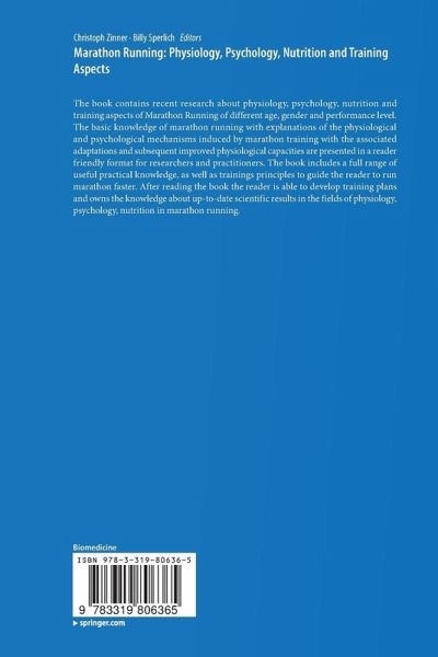 Physiology of Marathon Running.- Biomechanics of Marathon Running.- Nutrition before, during and after a Marathon.- Thermoregulation.- Coping with stress and fatigue (during theMarathon).- Motivational aspects (during the trainingprocess).- Marathon Running: Gender & Age aspects.- Principles of Training.