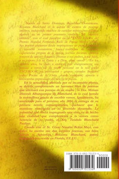 "Maravillosa", es la primera obra editada por la poetisa y escritora dominicana Rosanna Blanchard, autora independiente. Encierra 45 poemas de amplia variedad. Atendiendo al decir, "los versos son maravillosos", Rosanna Blanchard demuestra en su obra sus cualidades innatas para escribir constantemente versos que le hacen sentirse "Maravillosa" al momento. Tanto para el propio disfrute de los versos, como para tener un detalle con alguien al que le fascinen los poemas, "Maravillosa" es un libro que promete el deleite del lector con su contenido. !Placer garantizado!