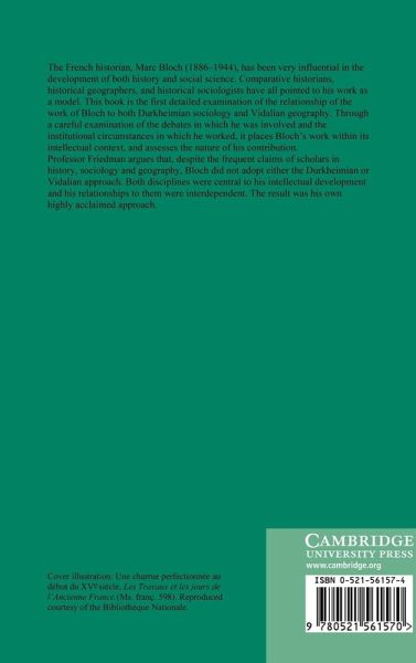 Marc Bloch has been very influential in the development of both history and social science. Comparative historians, historical geographers, and historical sociologists have all pointed to his work as a model. This book is the first detailed examination of the relationship of his work to both Durkheimian sociology and Vidalian geography. Through a careful examination of the debates in which he was involved and the institutional circumstances in which he worked, it places Bloch's work within its intellectual context, and assesses the nature of his contribution. Professor Friedman argues that, despite the frequent claims of scholars in history, sociology and geography, Bloch did not adopt either the Durkheimian or Vidalian approach. Both disciplines were central to his intellectual development, but Bloch's relationships to the two disciplines were interdependent, and the result was his own highly acclaimed and unique approach.