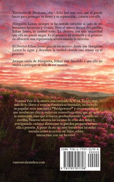 Sólo hay una cosa que él puede hacer para proteger su deseo y su reputación... casarse con ella. Margarita Lenox siempre se ha sentido invisible al lado de sus hermanas hermosas y vivaces. Pero el nuevo doctor del pueblo, Ethan James, lo cambió todo. La observa con una intensidad que ella no puede negar. Es el primero en animarla y el primero en ofrecerle una reprimenda severa cuando la necesita. El Doctor Ethan James guarda un secreto...hasta que Margarita Lenox lo sigue y descubre la verdad-donde casi muere en el proceso. Aunque cuida de Margarita, Ethan está decidido a que ella no vuelva a arriesgar su vida de esa manera.
