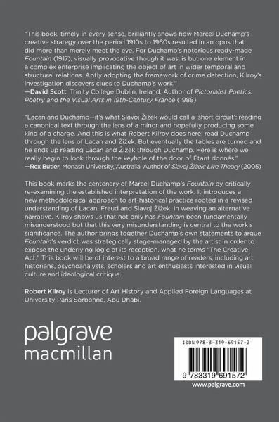 This book marks the centenary of Marcel Duchamp's Fountain by critically re-examining the established interpretation of the work. It introduces a new methodological approach to art-historical practice rooted in a revised understanding of Lacan, Freud and Slavoj Zizek. In weaving an alternative narrative, Kilroy shows us that not only has Fountain been fundamentally misunderstood but that this very misunderstanding is central to the work's significance. The author brings together Duchamp's own statements to argue Fountain 's verdict was strategically stage-managed by the artist in order to expose the underlying logic of its reception, what he terms 'The Creative Act.' This book will be of interest to a broad range of readers, including art historians, psychoanalysts, scholars and art enthusiasts interested in visual culture and ideological critique.