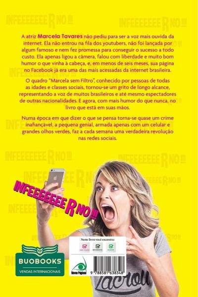 "A atriz Marcela Tavares não pediu para ser uma das vozes mais ouvidas da internet. Ela não entrou na fila dos youtubers, não foi lançada por algum famoso e nem fez promessa para conseguir o sucesso a todo custo. Ela apenas ligou a câmera, falou com liberdade e muito bom humor o que vinha à cabeça, e, em menos de seis meses, sua página no Facebook já era uma das mais acessadas da internet brasileira. O quadro "Marcela Sem Filtro", conhecido por pessoas de todas as idades e classes sociais, tornou-se um grito de longo alcance, representando a voz de muitos brasileiros e até mesmo espectadores de outras nacionalidades. E agora, com mais humor do que nunca, no livro que está em suas mãos. Numa época em que dizer o que se pensa torna-se quase um crime inafiançável, a pequena genial, armada apenas com um celular e grandes olhos verdes, faz a cada semana uma verdadeira revolução nas redes sociais."