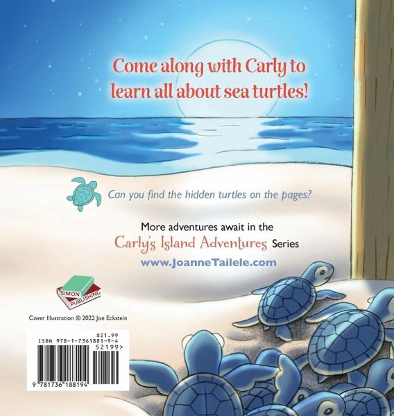 Come along with Carly and her neighbor, Ranger Todd to learn all about nature in the Carly's Island Adventure Series. In this book, March of the Sea Turtles, Carly and Ranger Todd will anxiously await the baby loggerhead turtles to hatch, leave their nest in the sands of Marco Island Beach, and make their way to the sea. Carly must help them find the way to the sea by removing an obstacle too large for them to crawl over, a sandcastle. A great read for young readers or story time by caregivers and teachers. Each book in the series will teach about another animal, reptile or fish on Marco Island, Florida and the surrounding southwest Florida area. As a special bonus, each two-page spread has a hidden baby turtle? Can you find the illusive little guy?