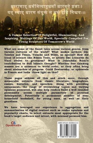 March To Opulence Edited By: Parikshit Nagesh Samant What are some of the finest tales across various genres, from various cultures of the world? What makes authors like Tolstoy and Twain, Valmiki and Wilde, so special? How did icons of science like Nikola Tesla, or artists like Leonardo da Vinci evolve to greatness? What is Jalaluddin Rumi's contribution to Sufi Islamic thought? Whether free thinking masses are a nuisance to world order, or they often bring about avalanches of progress. Could Dostoevsky, or upheavals in France and India throw light on this? These pages address all this and much more, through memorable extracts from classic literature, biographies, essays, histories, and speeches. Along with providing amusement, the range of overarching topics and varying opinions presented, will also help readers build a well rounded personality across multiple parameters of personal development. Potentially a permanent member of your household bookshelf, for young ones, as well as their guardians. We have leveraged our experience in aggregation and summarization of digital content such as reader opinions and popularity charts, to select extracts most appropriate for the book's target audience and intent, with minimal personal bias.