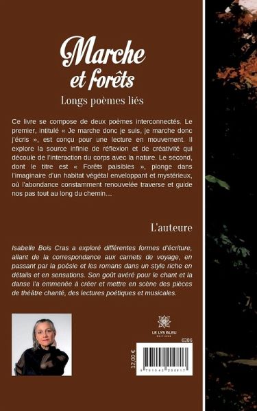 Ce livre se compose de deux poèmes interconnectés. Le premier, intitulé « Je marche donc je suis, je marche donc j¿écris », est conçu pour une lecture en mouvement. Il explore la source infinie de réflexion et de créativité qui découle de l¿interaction du corps avec la nature. Le second, dont le titre est « Forêts paisibles », plonge dans l¿imaginaire d¿un habitat végétal enveloppant et mystérieux, où l¿abondance constamment renouvelée traverse et guide nos pas tout au long du chemin¿